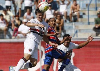 O São Paulo superou o Fortaleza por 4 a 0, com gols de Adelino, Tiago, João Schmidt e Lucas, e...