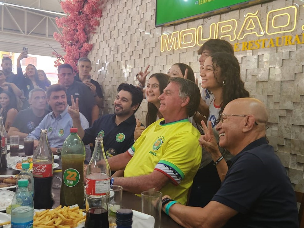 Em visita à Goiás para apoiar as campanhas de Fred Rodrigues, em Goiânia, Professor Alcides, em Aparecida, e Márcio Correa, em Anápolis, o ex-presidente Jair Bolsonaro tirou foto com apoiadores durante almoço na tarde desta 3ª feira (24).