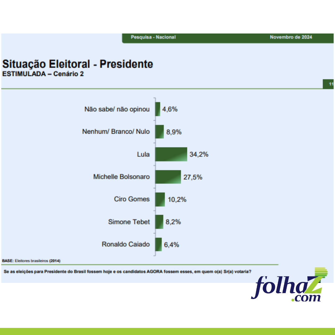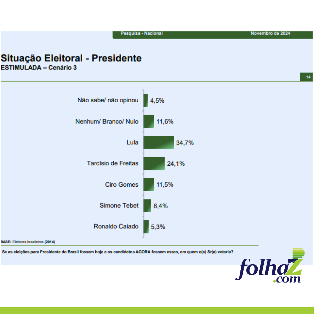 A margem de erro, conforme mencionado, é de 2pp para mais ou para menos e o nível de confiança registrado pelo instituto foi de 95%.