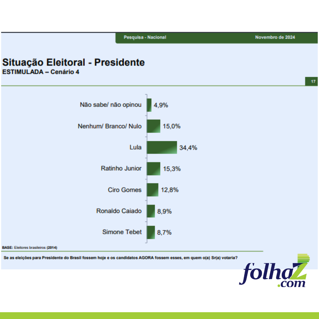 No pior resultado, Caiado ficou em último contra Lula, o ex-presidente Jair Bolsonaro (hoje inelegível), Ciro e Tebet.