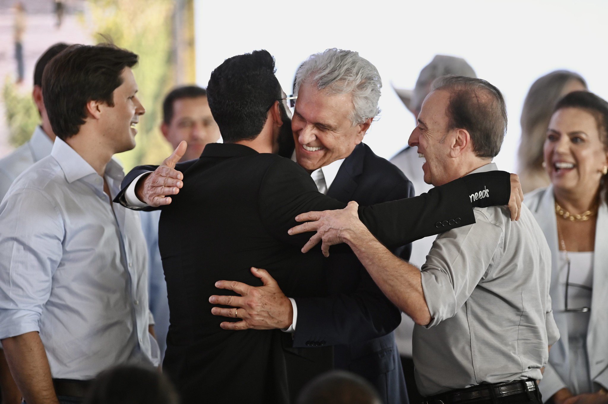 Gusttavo Lima e Ronaldo Caiado durante lançamento de obras do Cora | Foto: DIvulgação