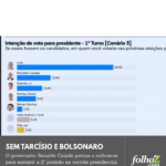 O pior cenário para o goiano é com Fernando Haddad (PT) e Tarcísio de Freitas (Republicanos), quando marca 5,6%, mas ainda assim se mantém isolado em 3º lugar.