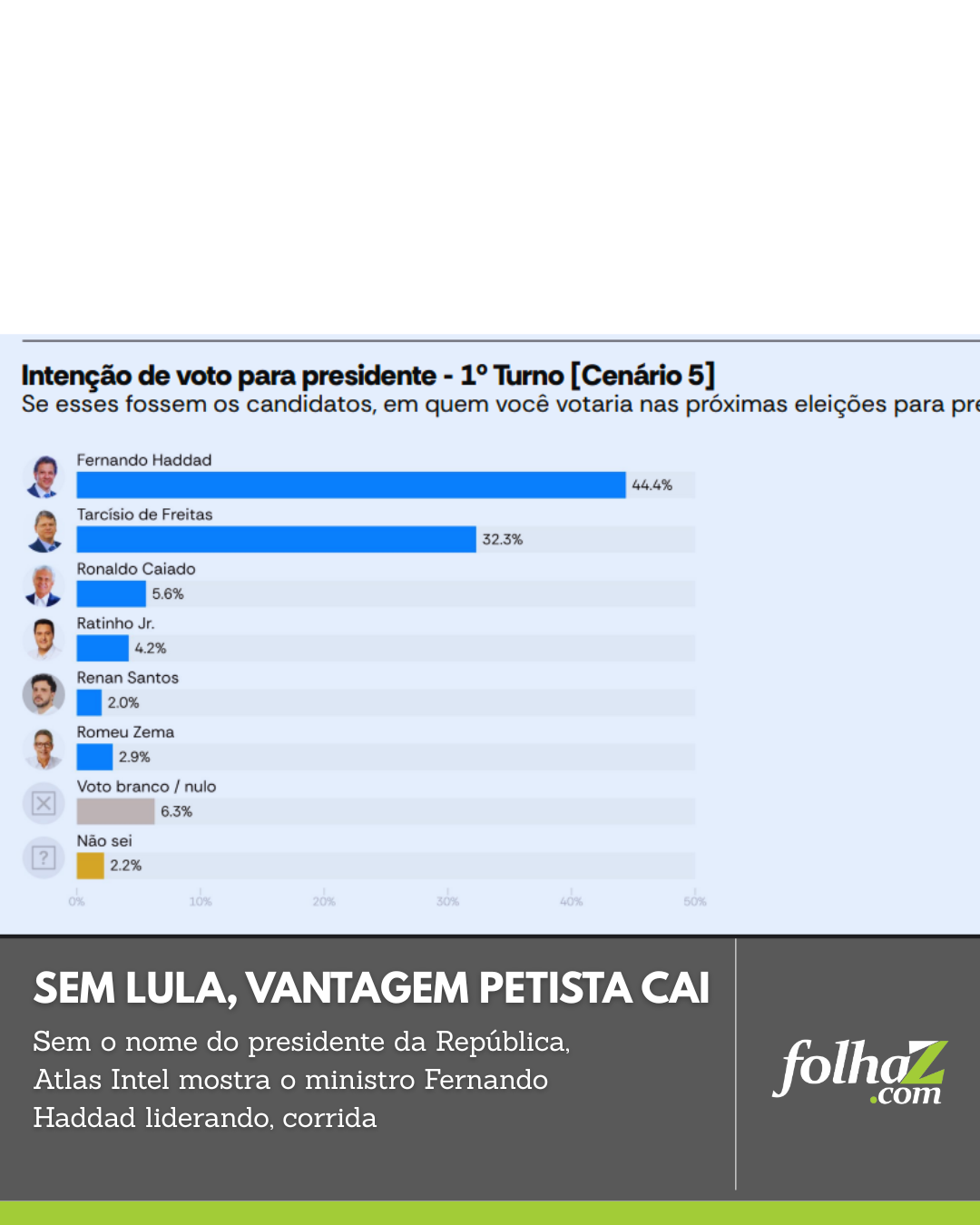 Os dados da penúltima pesquisa Atlas Intel / Bloomberg, divulgada antes do início oficial do ano eleitoral, mostram queda nas intenções de voto do presidente Lula (PT) e crescimento de pré-candidatos da direita.