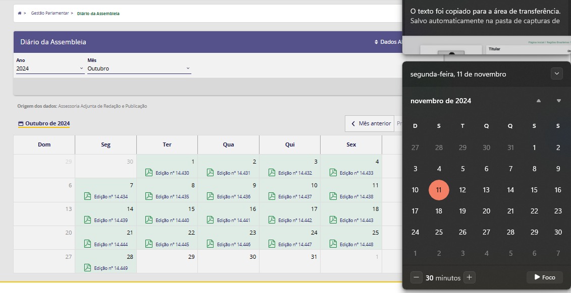 Da última atualização, feita no dia 22 de outubro, até esta 2ª feira (11), são 14 dias de atraso desde a publicação do último Diário Oficial no site.