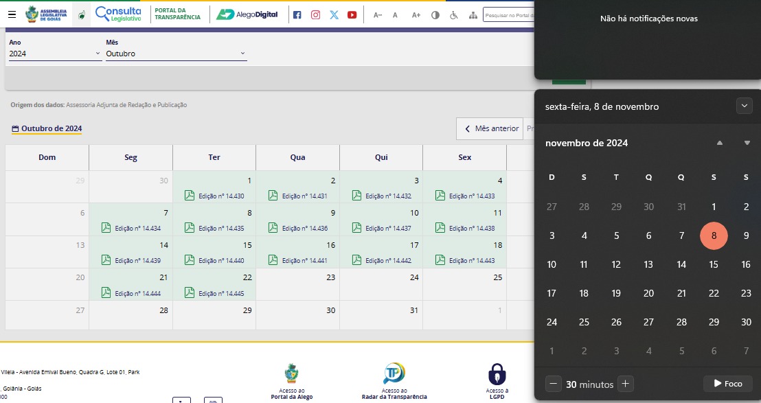 As publicações do Diário Oficial da Assembleia Legislativa de Goiás (Alego) segue sendo realizadas com um atraso de 2 semanas.