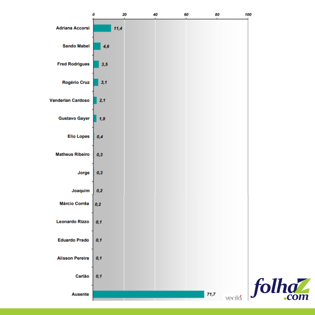 Entre os prefeitáveis, também foram citados os nomes de Matheus Ribeiro (PSDB) e Leonardo Rizzo (Novo), que somaram 0,4%, juntos.