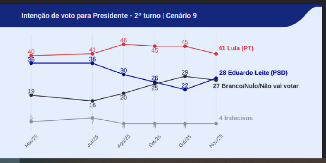 Lula 41% x 28% Eduardo Leite
