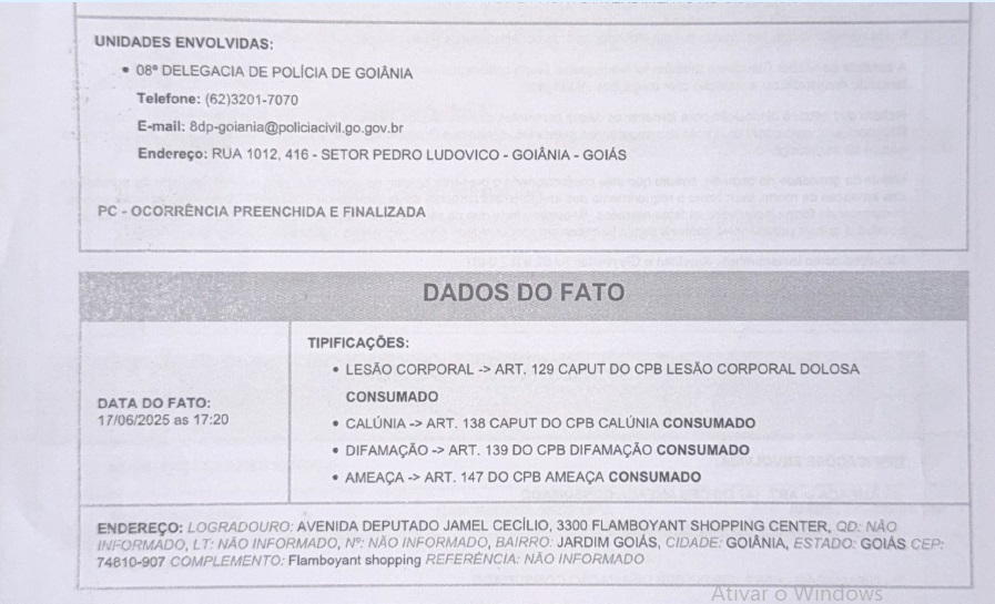 O presidente nacional do partido, Leonardo Avalanche, registrou boletim de ocorrência no 8º Distrito Policial, no setor Pedro Ludovico, por lesão corporal, calúnia, ameaça e difamação.