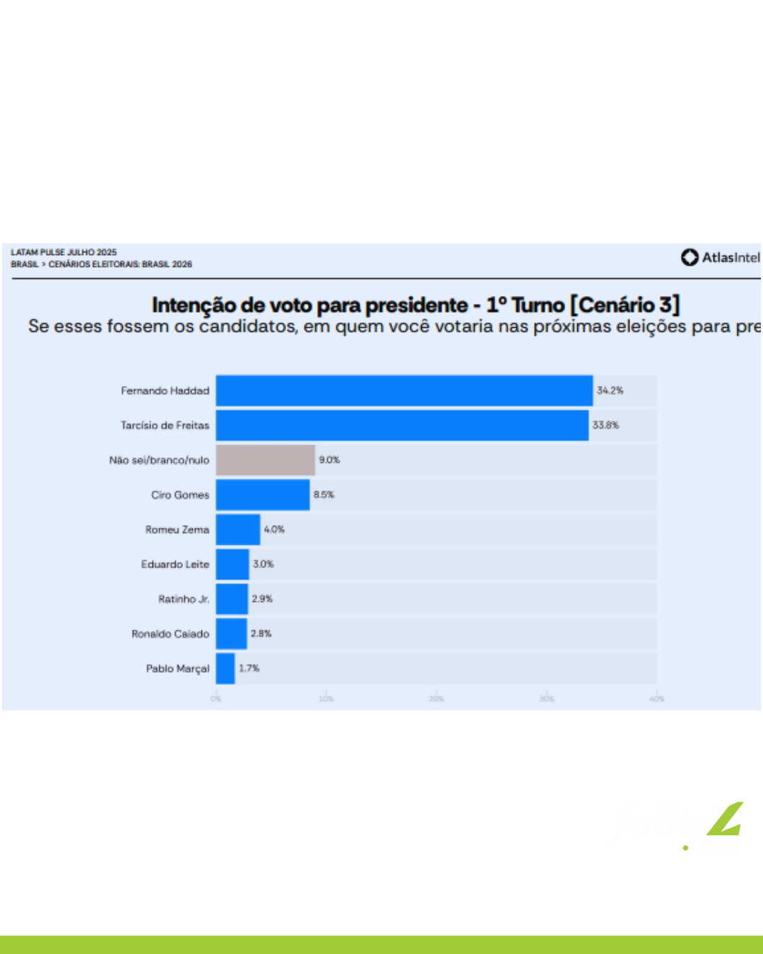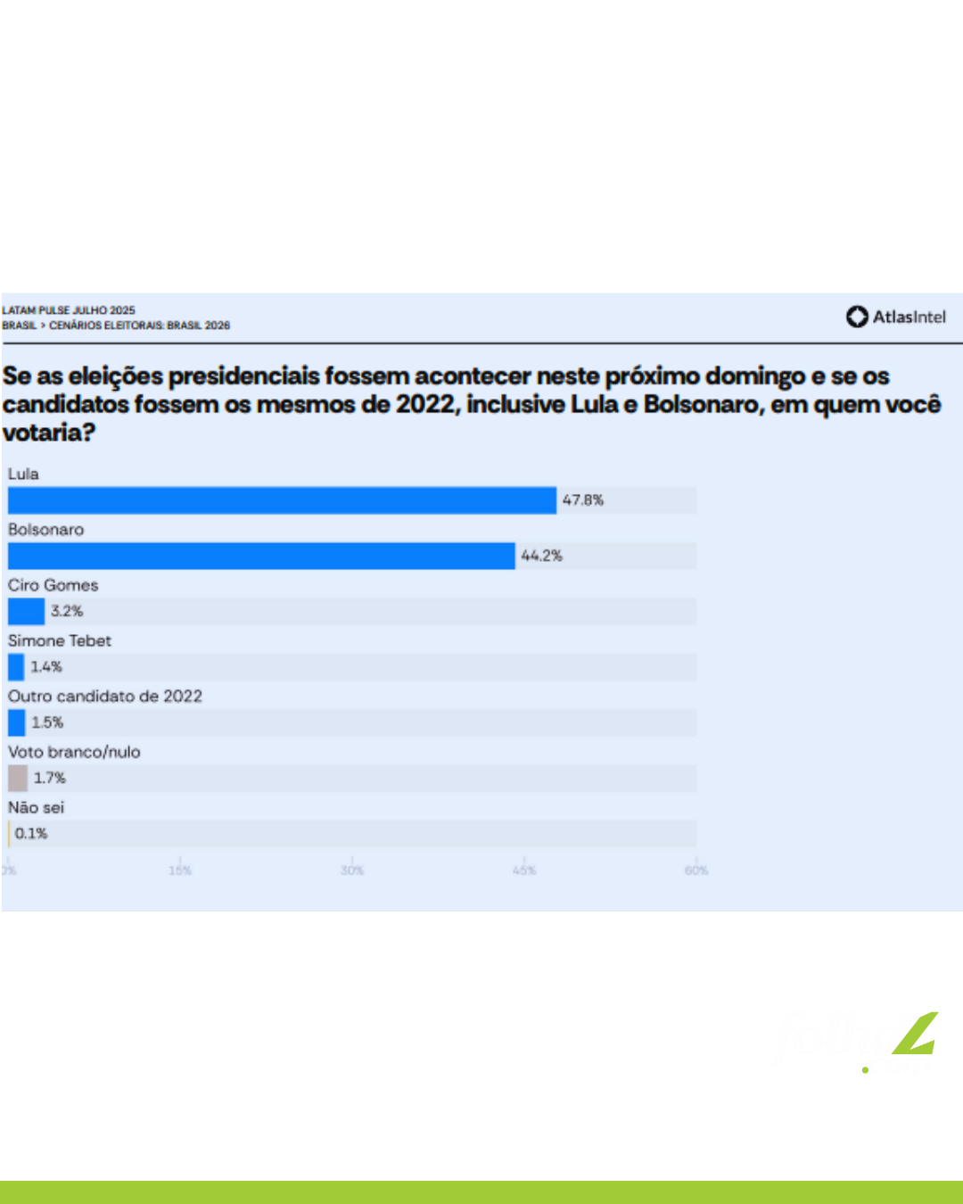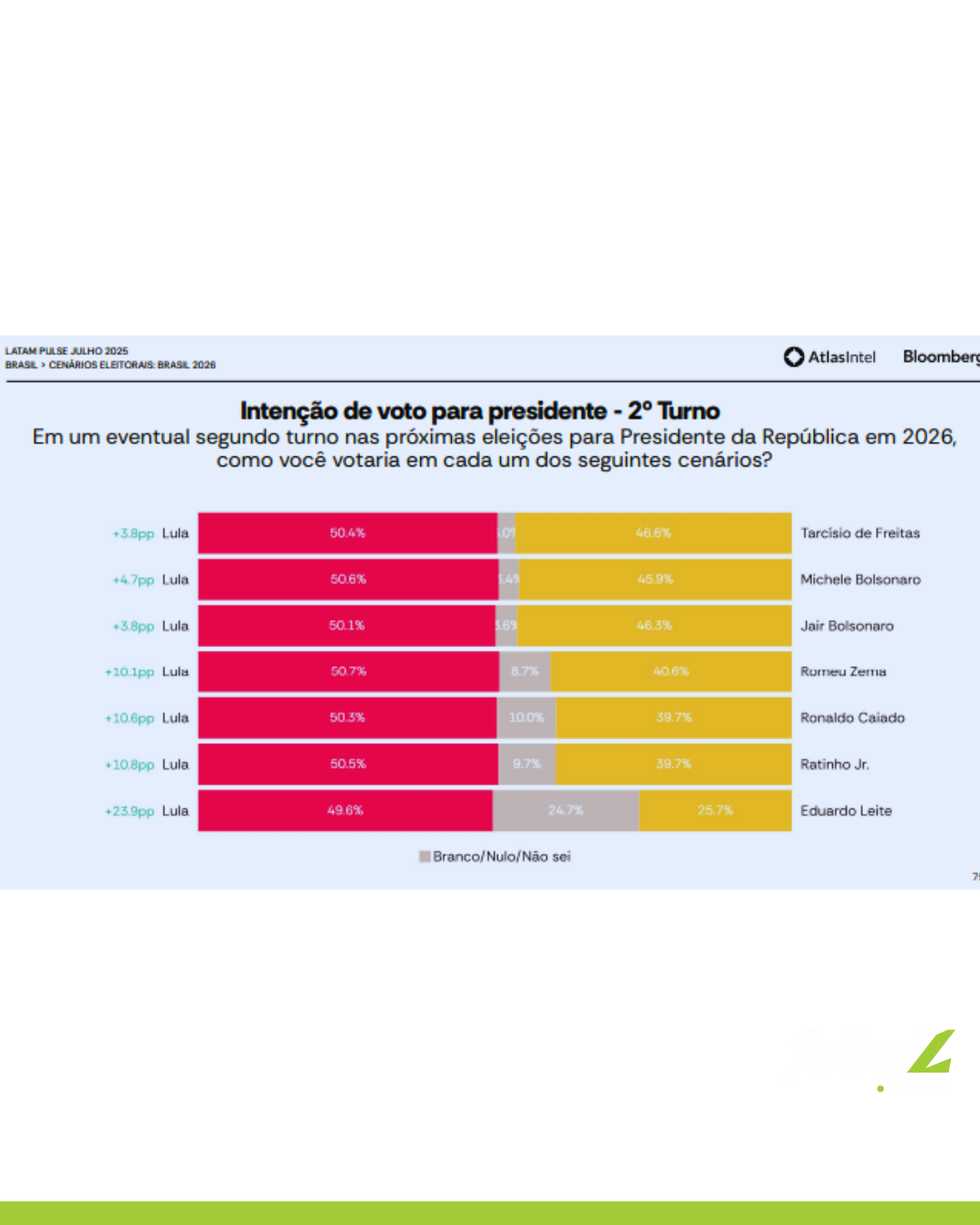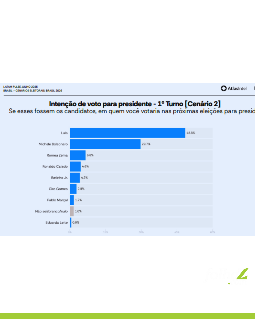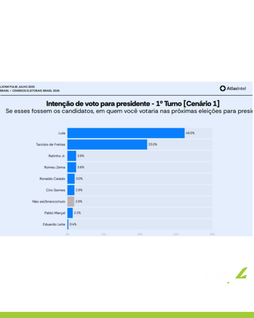 Segundo análise da Folha Z, com base na mais recente pesquisa Atlas Intel/Bloomberg, divulgada nesta 5ª feira (1º), o presidente Lula cresceu nas intenções de voto para as eleições de 2026.
