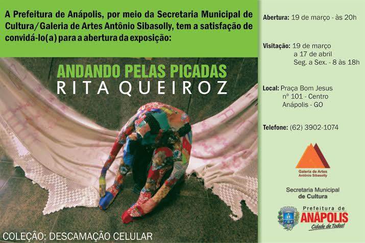 Acontece em Anápolis, a partir do dia 19, a exposição de arte Andando pelas Picadas, da autora Rita Queiroz. O evento, que acontece na Galeria de Artes Antônio Sibasolly, terá inauguração às 20h.