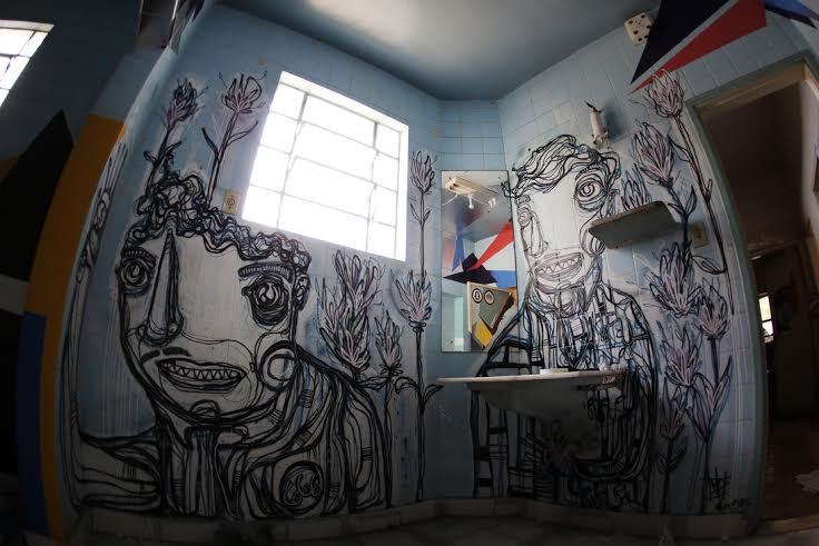 Pifo também conhecido como Kadu Doy, nasceu em 1983 em São Paulo e é diretor de arte e ilustrador, mixa o aprendizado das ruas com refinadas técnicas do design resultante da milhagem acumulada em algumas das melhores casas de comunicação do país, marcando trajetória em empresas como Trip, Evoke e Sinlogo, tendo obras expostas em espaços como Choque Cultural, KingCap, Museu da Escultura Brasileira, Hinfumya (Osaka, Japão) e Kobe Urban Festival (Kobe, Japão). É conhecido por sua prolixidade nas ruas de São Paulo e também sob as firmas de Sosek, Necro San, 1FA e Susto”sBASE-V é um grupo de artistas de São Paulo que atua desde 2002. Atualmente é formado por Zansky, Danilo Oliveira e David Magila. Trabalham a partir da experimentação livre e improvisação. Produzem em diferentes linguagens, de publicações artesanais a instalações gráficas, misturando técnicas e materiais. O grupo valoriza o trabalho coletivo acima da individualidade, para criar novas formas de comunicação artística. Revela uma grande variedade de texturas, harmonias, timbres e materiais, onde cada integrante do grupo deixa seu rastro e o próximo o mostra (ou deleta) dentro de um novo universo de referênciasLaila Loddi (DOBRA) é artesã, arquiteta e urbanista (UFSC), mestre em Arte e Cultura Visual (UFG), professora nos cursos de Arquitetura e Design nas áreas de desenho, expressão e modelagem manual. Seu trabalho artístico perpassa a plasticidade do material papel e suas características maleáveis e efêmeras, atingindo escalas que passam pelo corpo, pelo objeto e pelo espaço, sempre tendo em vista o processo exploratório tátil do toque das mãos e da manipulação da forma. São criadas texturas e volumetrias que podem cobrir pequenas fendas ou grandes paredes, coladas à superfície como parasitas ou suspensas, aéreas e flutuantesCarlos Dias é artista autodidata e músico. Um dos principais nomes da cena de rock independente de São Paulo, onde viveu por 20 anos, começou criando cartazes de shows de bandas, capas de fita k7 e cds, zines, posters e adesivos, os quais espalhava pela cidade e distribuía entre amigos. A pintura em tela e suportes de madeira desenvolveu-se como consequência dessas práticas iniciais, e se expandiu em outras mídias e formatos, tais como pinturas em murais, instalações, desenhos, vídeos e músicas. Seu trabalho é essencialmente figurativo, carregado de múltiplas camadas que se sobrepõem, acumulando formas e personagens variados