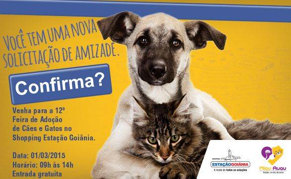 Voluntários do grupo Miau AuAu promoverão a 12ª Feira de Adoção de Cães e Gatos, no Shopping Estação Goiânia, neste domingo (1º de março), das 9h às 14h. O evento vai reunir em torno de 80 pets que poderão ser adotados por quem comparecer.