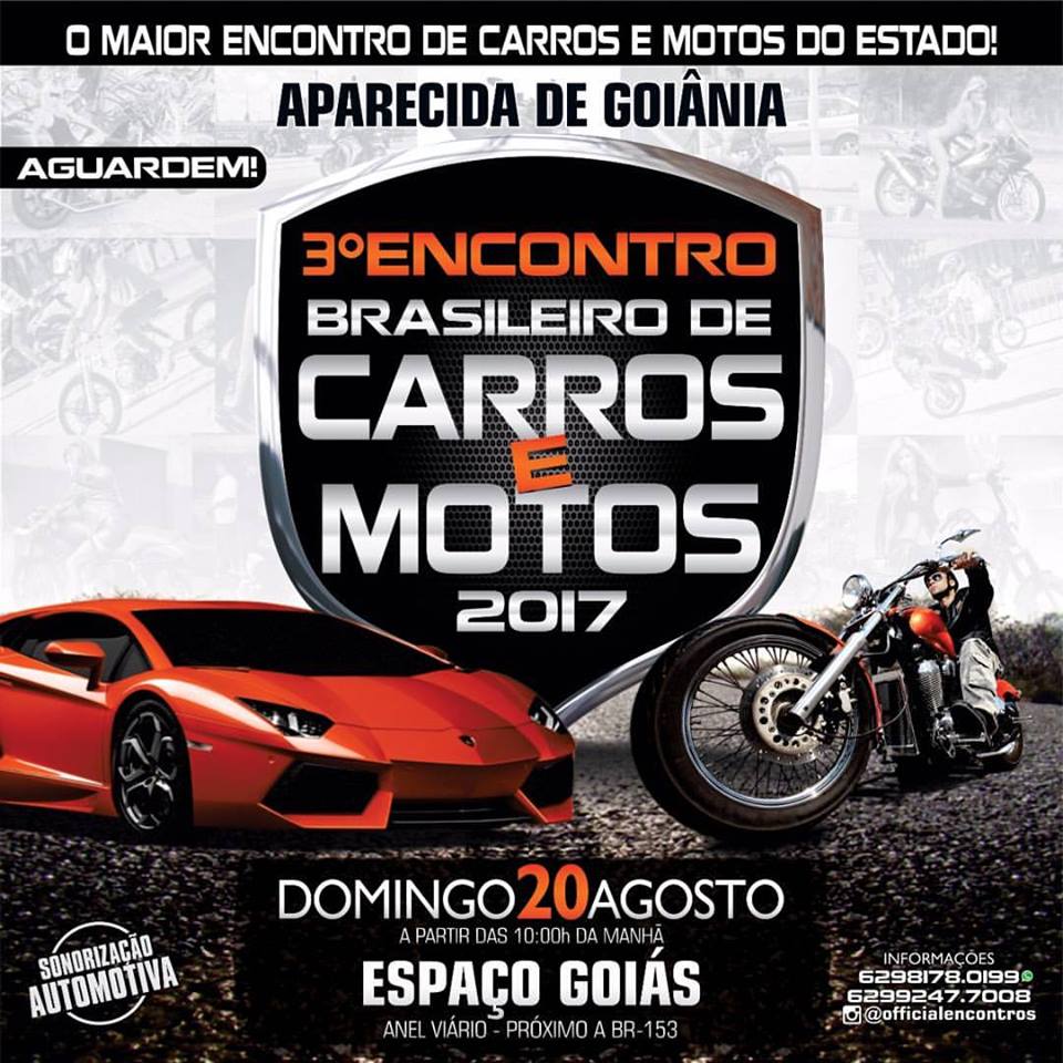 Para os fãs de automobilismo, um evento em Aparecida de Goiânia é a melhor pedida para o mês de agosto. Considerado a maior atração do tipo no Estado, o 3º Encontro Brasileiro de Carros e Motos 2017 será realizado no dia 20 de agosto, um domingo.
