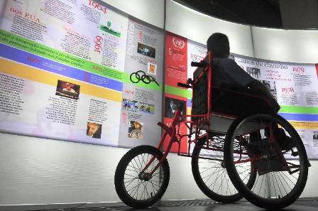 A partir de vários recursos multimídia – vídeos, áudio-guia, texturas e brinquedos acessíveis – os visitantes fazem um passeio pela história da discriminação sofrida e da luta das pessoas com deficiência para terem os direitos humanos garantidos.
