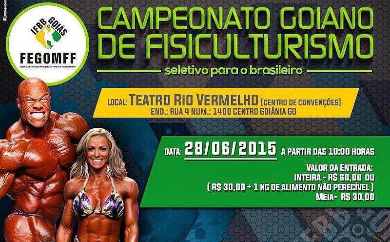 A Federação Goiana de Musculação Fitness e Fisiculturismo (Fegomff/IFBB-GO) realiza a 4ª edição do Campeonato Goiano de Fisiculturismo no próximo dia 28 de junho. Pela primeira vez o evento será realizado no Teatro Rio Vermelho, no Centro de Convenções de Goiânia e a diretoria espera bater o recorde de público.
