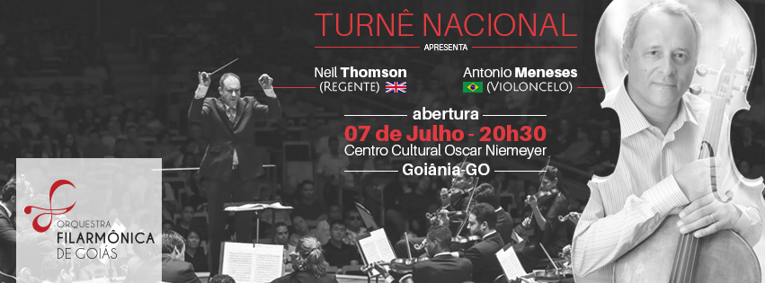 A Orquestra Filarmônica de Goiás realizará o concerto de abertura de sua 2ª Turnê Nacional no dia 7 de Julho, às 20h30. A apresentação será no Centro Cultural Oscar Niemeyer e tem como convidado o violoncelista Antonio Meneses. Depois disso, a turnê passará por três cidades paulistas.