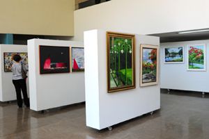 Na exposição, há 40 telas que retratam a cidade e os principais cartões postais. Entre os cenários escolhidos, estão a Estação Goiânia, Praça Cívica e os parques municipais.