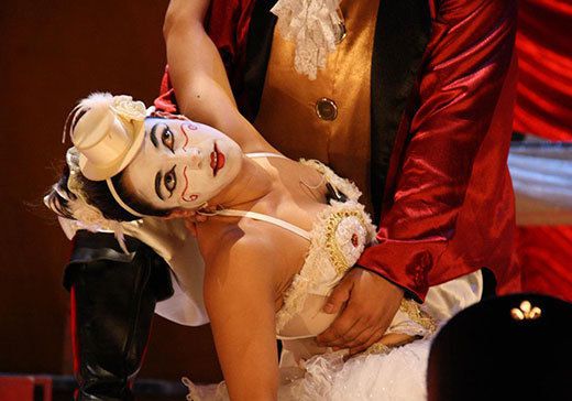 Na apresentação, uma história trágica de amor entre a bailarina e seu amante, o atirador de facas. A trama é contada pelo Apresentador e, também, pelo Investigador, que investiga a morte da bailarina. O principal suspeito? O atirador de facas.