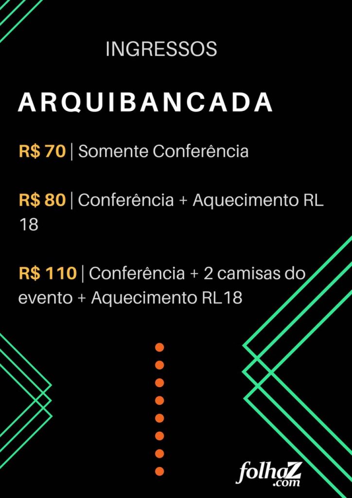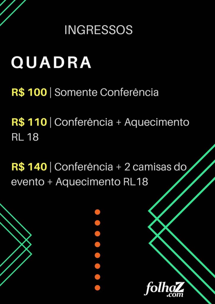 Por mais R$ 30, o combo inclui conferência, aquecimento LR18 e mais duas camisetas.