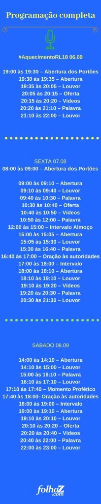 O line-up do evento inclui louvores, cultos, palestras e atividades.