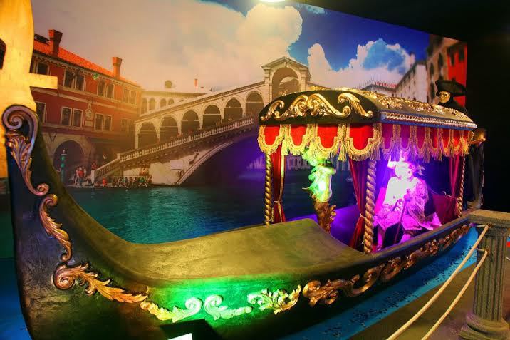 Localizada no nordeste da Itália, Veneza é conhecida pela sua história, canais, museus e monumentos. E para apresentar um pouco da cultura de uma das mais importantes cidades da Europa, a exposição traz trajes, máscaras e músicas do tradicional e antigo Carnaval de Veneza. E para inspirar ainda mais o romantismo, a mostra conta com uma gôndula (barco veneziano) de 8 metros com um gondoleiro animatronic, representando os tradicionais passeios românticos pelos canais da histórica cidade.