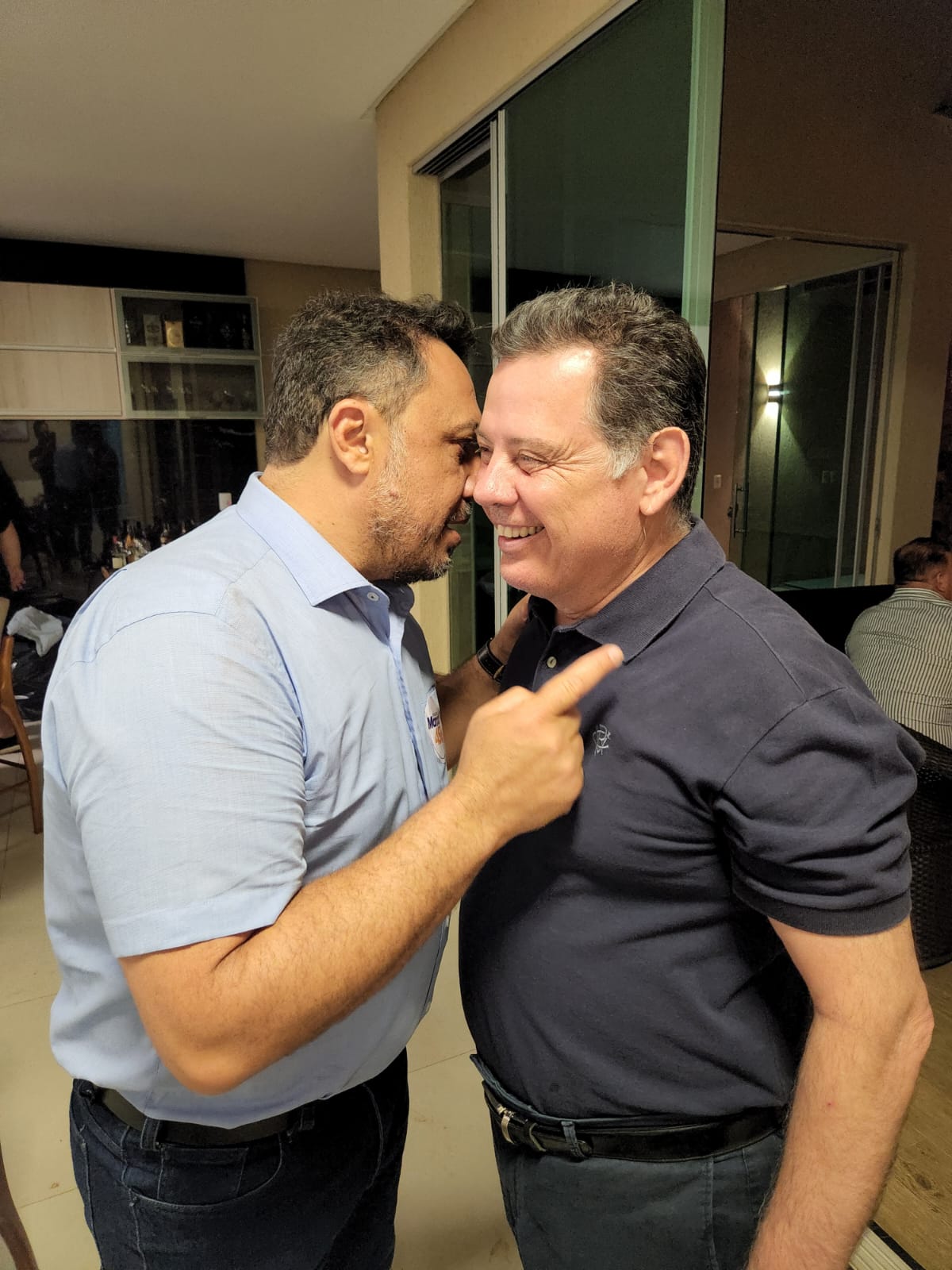 Marconi Perillo em conversa com seu coordenador de campanha em Aparecida, André Fortaleza (Foto: Cauan Santos - Folha Z)