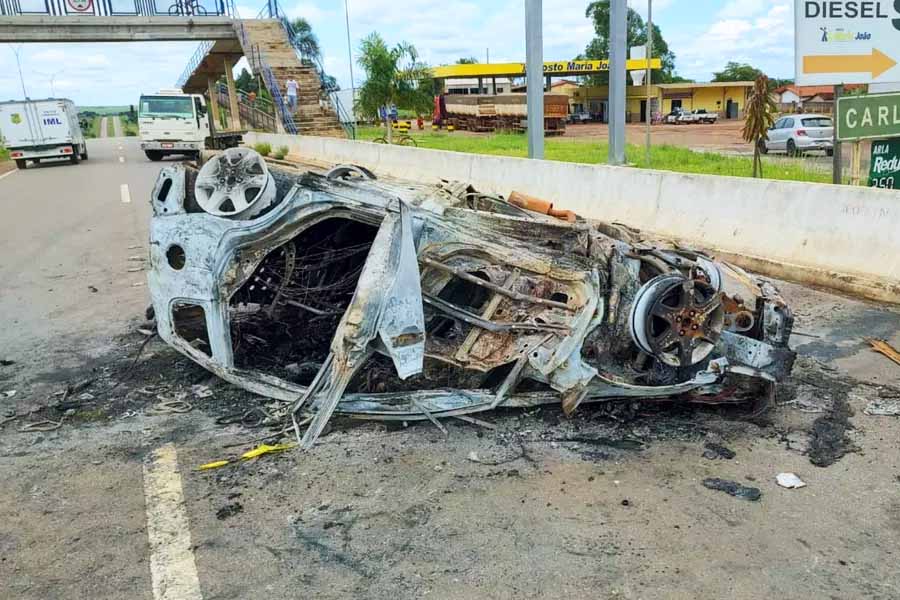 Segundo informações da Polícia Rodoviária Federal (PRF), o carro ficou sem controle após passar por um quebra-molas, bateu no canteiro central, capotou e pegou fogo.
