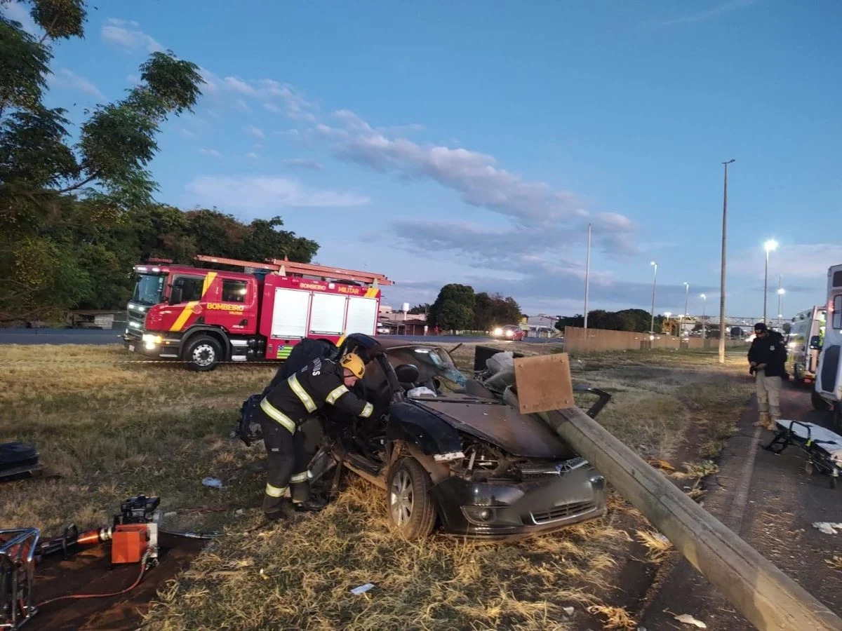 Segundo o Corpo de bombeiros, um carro perdeu controle na pista, capotou e, em seguida, colidiu com um poste.