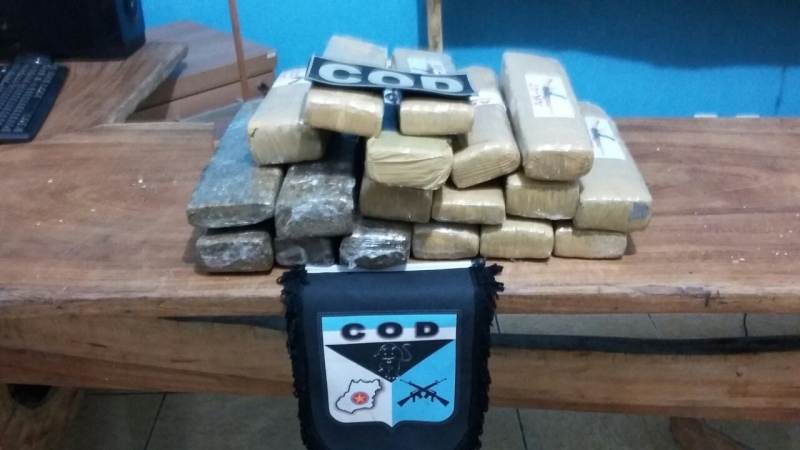De acordo com a Polícia Militar, a equipe que participou de operação realizada na Base de Cachoeira Alta encontrou 18 tabletes de maconha na bagagem de mão do suspeito Marcos Vinicius Pereira.