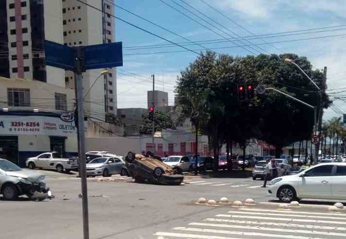 Uma forte batida provocou o capotamento de um veículo no cruzamento da Avenida T-7 com a Avenida T-2, no Setor Bueno, em Goiânia.