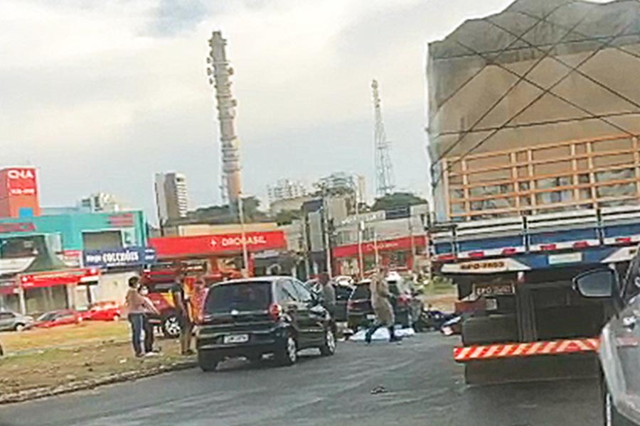 Um jovem de 22 anos morreu em acidente envolvendo 2 motocicletas e 2 carros na manhã desta 3ª feira (18) na Vila Brasília, em Aparecida de Goiânia.