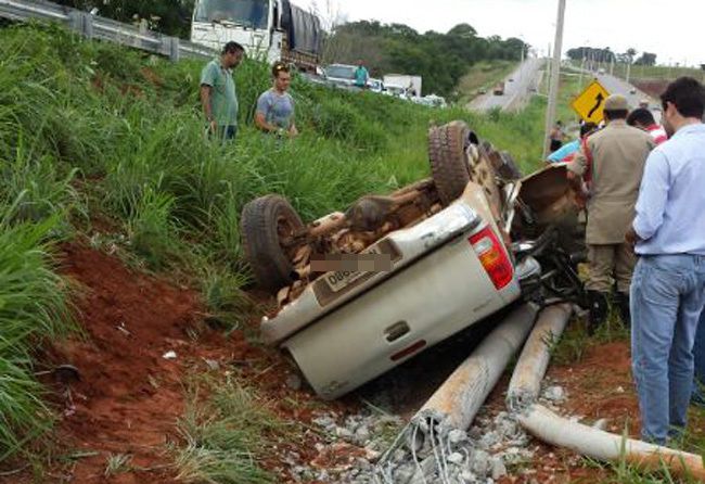 O motorista de uma caminhonete Hillux, prata, com placa de Nerópolis, seguia pela rodovia sentido Goiânia – Inhumas. A poucos metros do trevo de Caturaí, ele perdeu o controle da caminhonete e capotou. Dois postes foram arrancados e o veículo parou no canteiro central da rodovia.