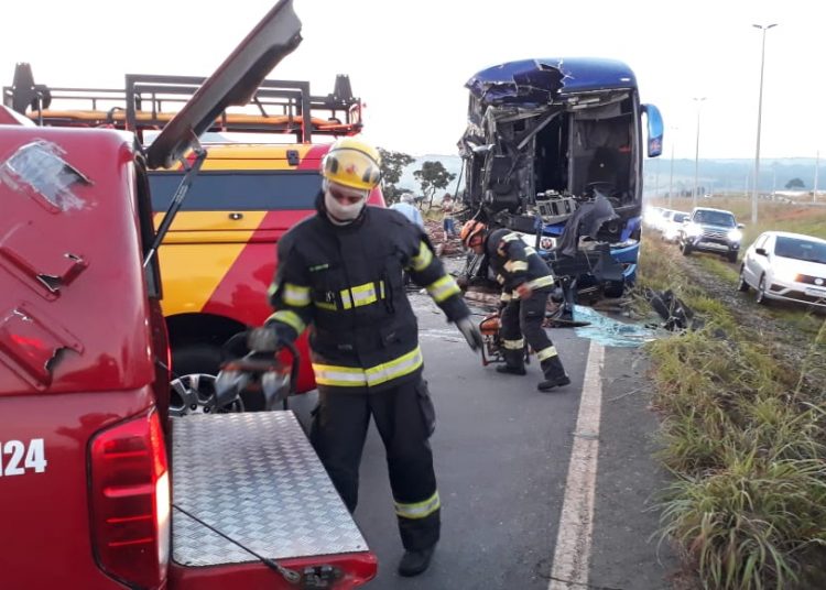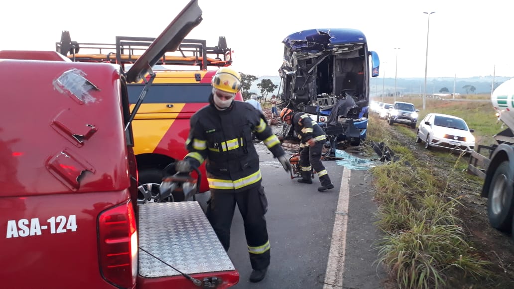 Frente de ônibus em acidente registrado em Senador Canedo | Foto: CMBGO