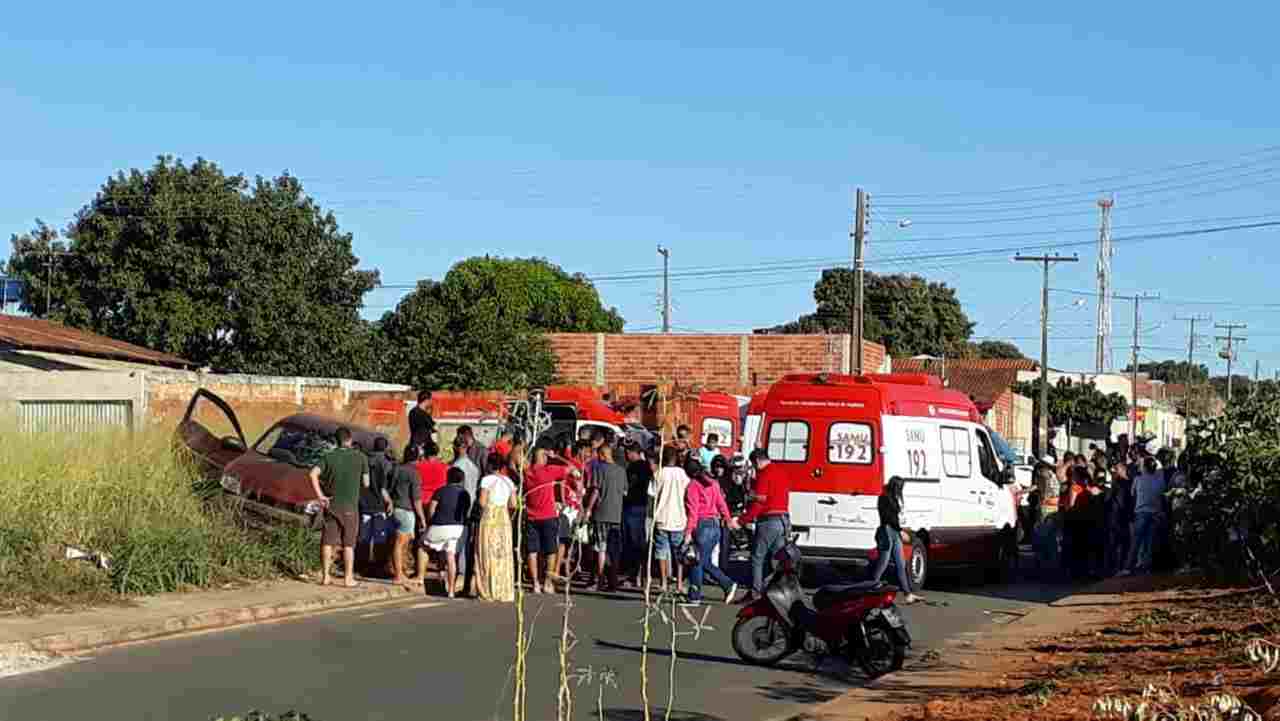 Um acidente envolvendo 1 carro e 1 moto deixou 5 vítimas, sendo 1 delas um bebê, no Bairro Independência, em Aparecida de Goiânia.