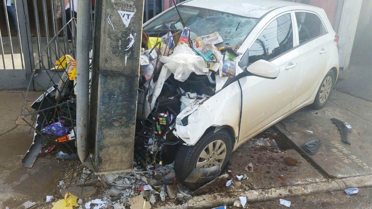 Carro só parou quando atingiu um poste / Foto: Folha Z