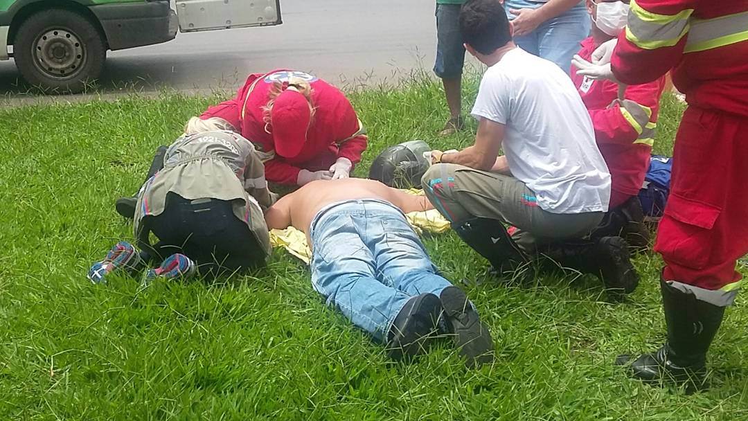 Com uma costela fraturada, mas consciente, a vítima recebeu os primeiros socorros de uma ambulância do Ipasgo que trafegava próximo ao local.