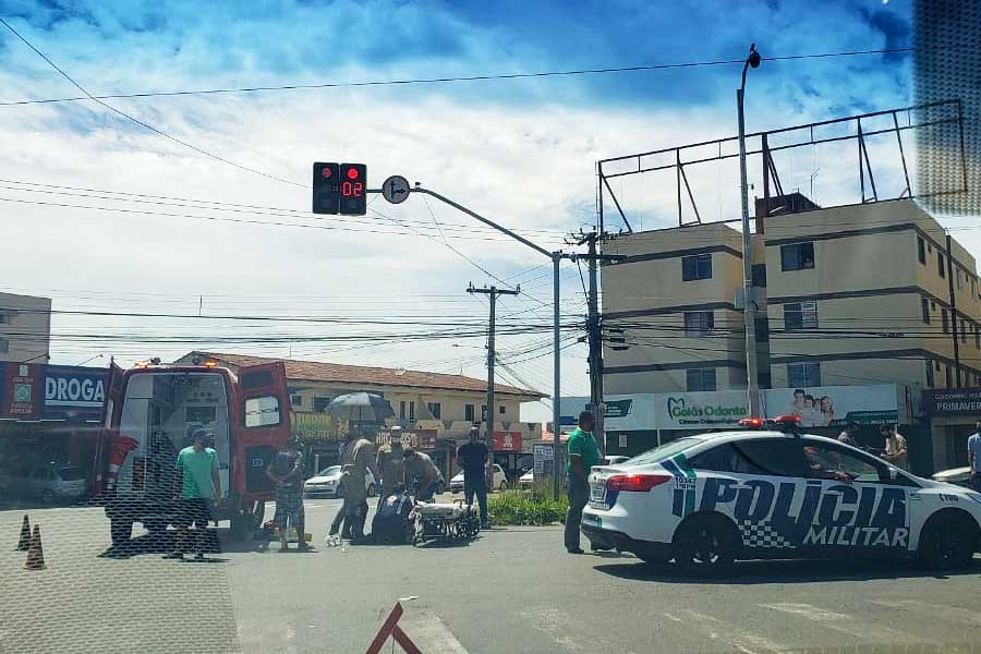 Um motociclista ficou ferido após acidente com um carro de passeio no cruzamento das avenidas Tapajós e Paraguassu, no Setor dos Afonsos, em Aparecida.