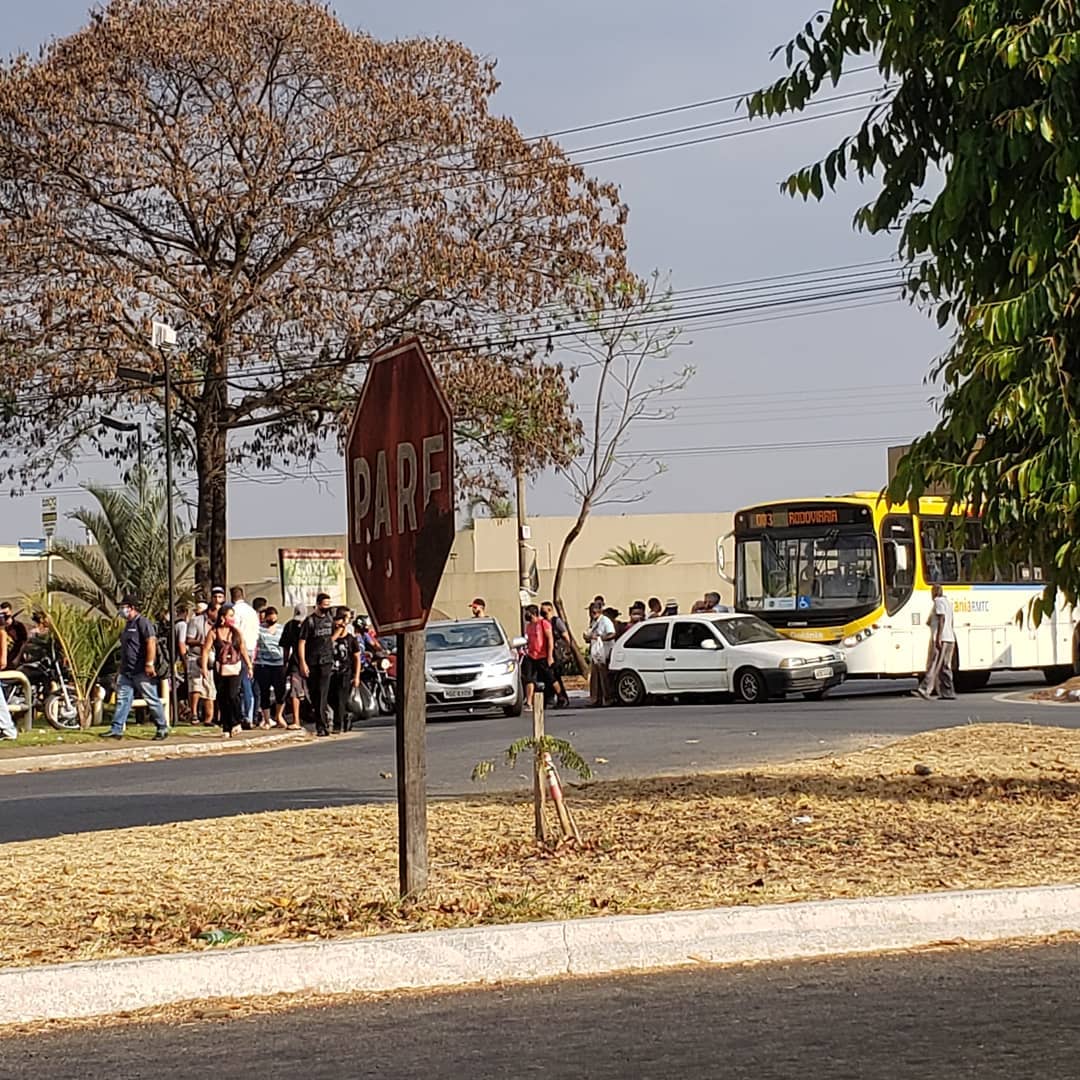 Um acidente entre ônibus do transporte coletivo e um carro interditou parte do cruzamento da Avenida Rio Verde com a rodovia GO-040, em Aparecida de Goiânia.