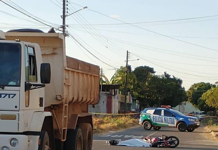 Um colisão entre uma moto e um caminhão provocou a morte do motociclista na tarde desta 5ª feira (15), em Aparecida de Goiânia.