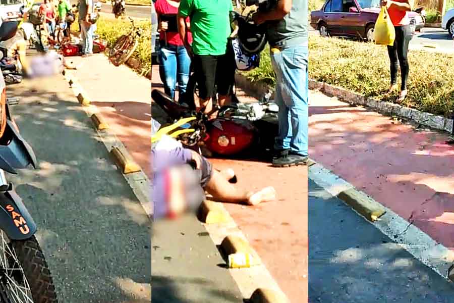 Um motociclista ficou ferido após bater contra tachões da Avenida Benedito Silvestre de Toledo, na divisa do bairros Independência Mansões e Jardim Riviera, em Aparecida de Goiânia.
