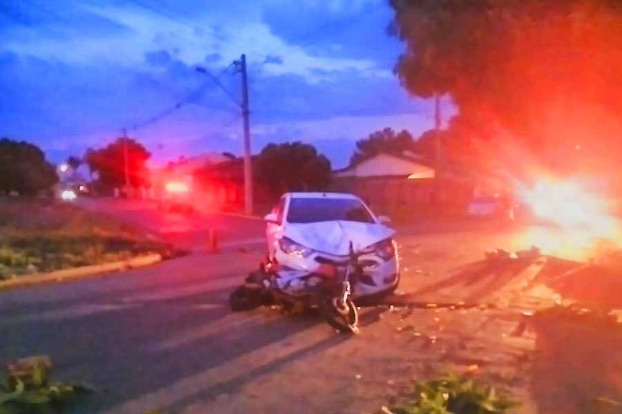 No Bairro Village Santa Rita, um motocilista de 36 anos ficou em estado gravíssimo após colidir de frente contra um carro de paseio na Rua SMR 5.