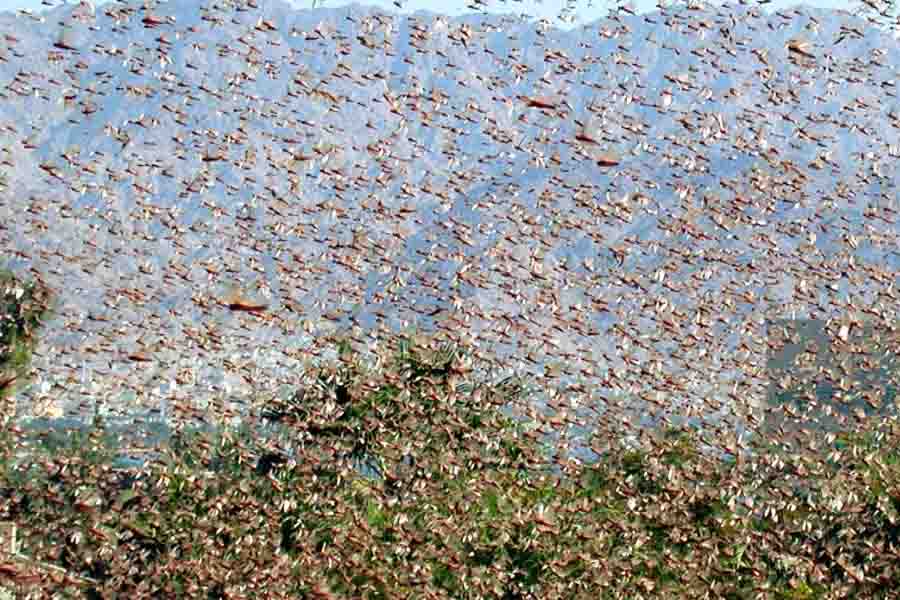 Em temperaturas mais elevadas, a nuvem de gafanhotos, estimada em 40 milhões de unidades, pode percorrer até 150 quilômetros por dia e devastar imensas áreas com diversos tipos de cultivo.