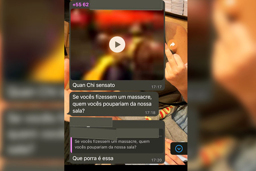 'Se vocês fizessem um massacre, quem vocês poupariam da nossa sala?', questionou jovem de 19 anos em grupo de WhatsApp