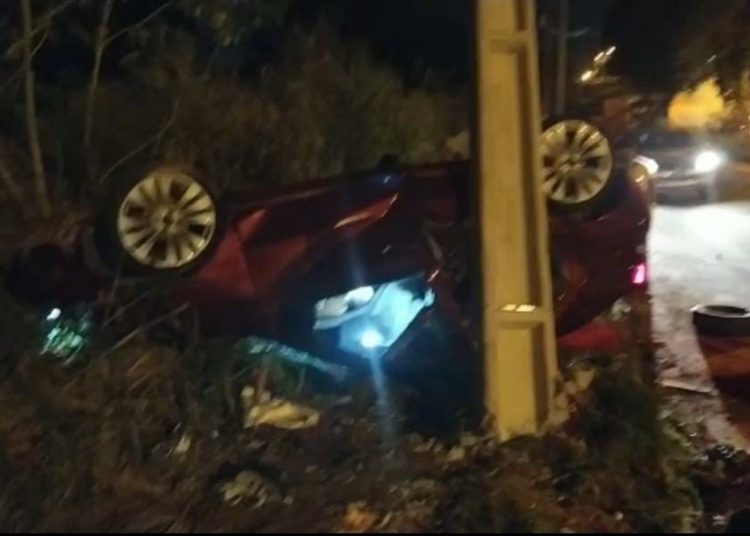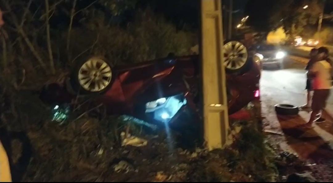 Um homem ficou ferido na noite deste sábado, 1º de maio, após capotamento do carro em que conduzia.