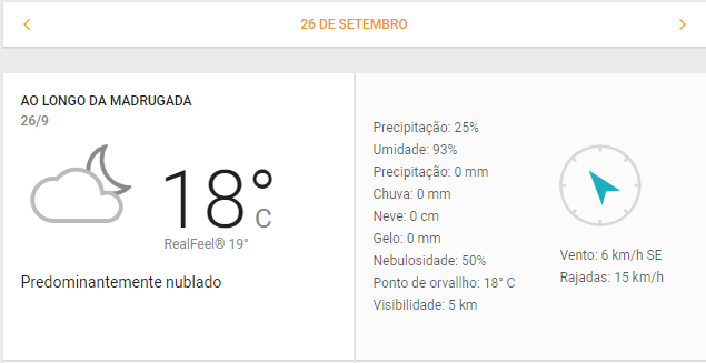 Previsão do tempo na madrugada de 26/09, em Aparecida | Foto: Inmet