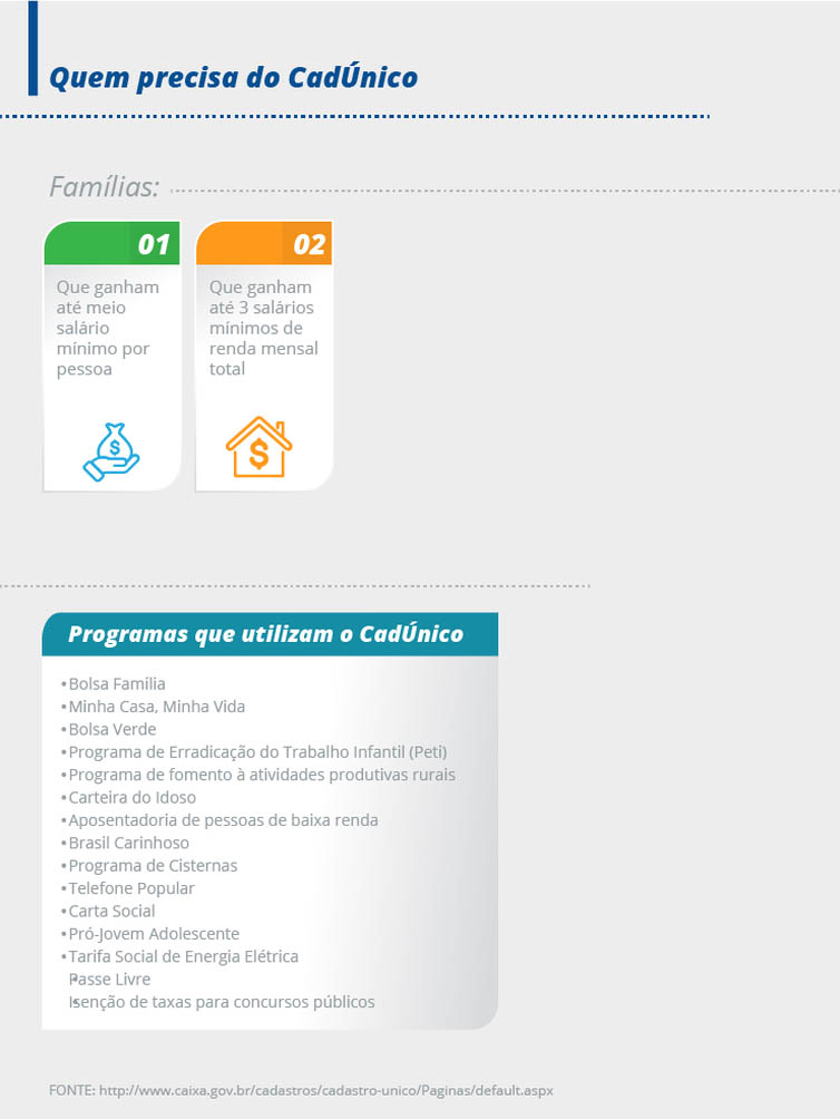 Com as informações coletadas pelo CadÚnico, o governo federal pode traçar um mapa de ações voltadas à melhoria da qualidade de vida de famílias que vivem com pouca ou nenhuma renda mensal.