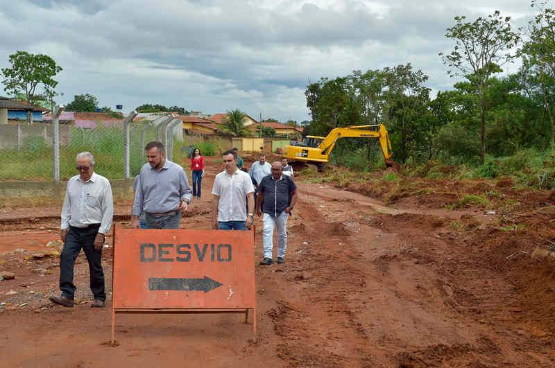 Os trabalhos se concentram na parte de escavação das vias com maquinário da prefeitura, que realiza intervenções no solo para a implantação de galeria pluvial para o escoamento da água da chuva.
