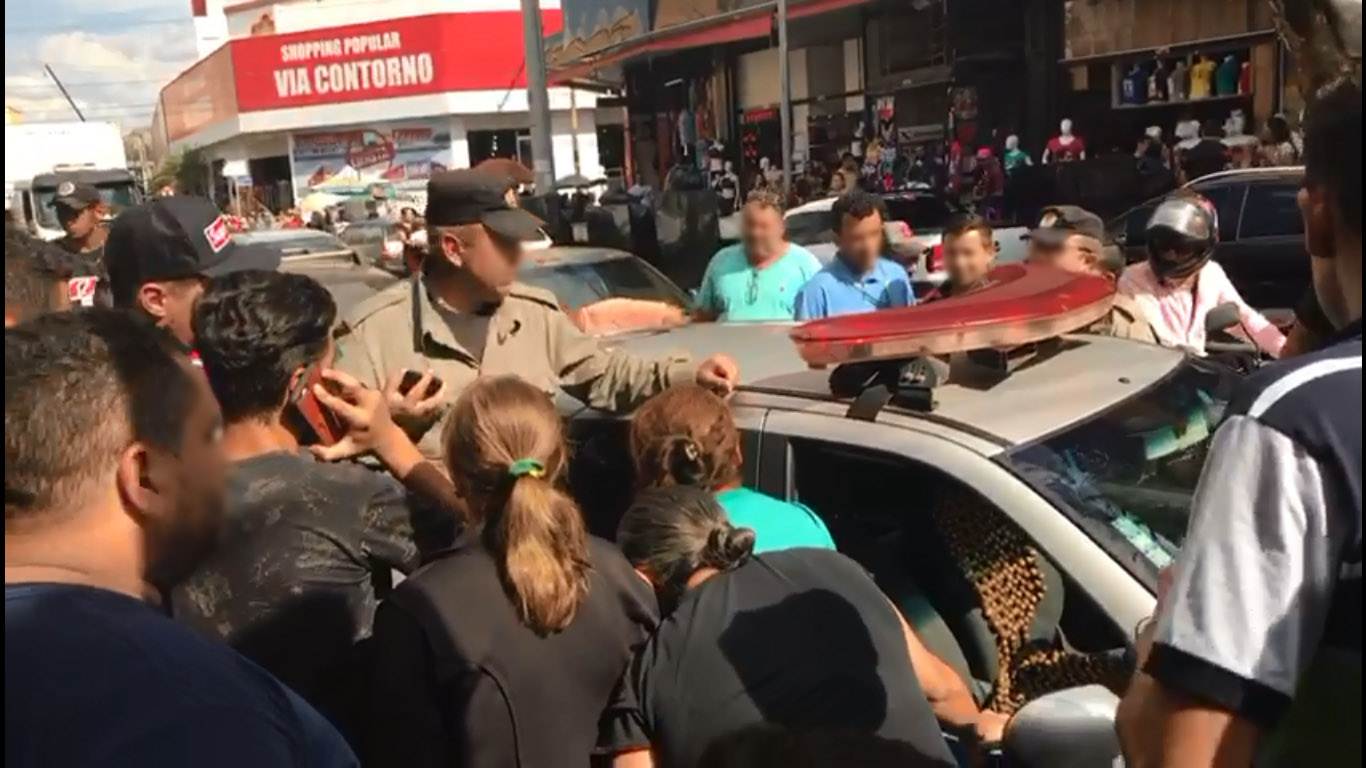 Da viatura, o criminoso ainda ameaçou que voltaria “para pegar” os lojistas.
