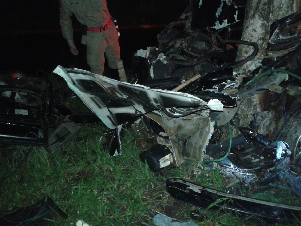 O carro, um audi roubado, ficou completamente destruído. De acordo com as informações, o veículo se partiu em três. Dois homens morreram no local e o terceiro foi socorrido pelo Corpo de Bombeiros.