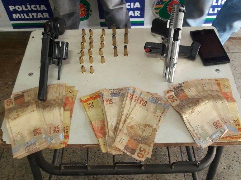 Com eles foram apreendidas uma pistola calibre 380 e um revólver calibre 38, além de R$ 3.000 em dinheiro e um aparelho de telefone celular, produtos do roubo.